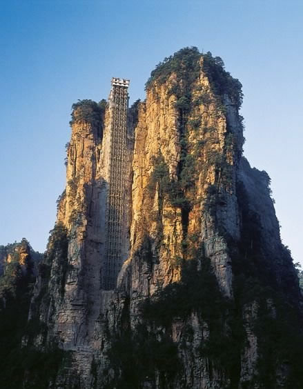 | 百龍?zhí)焯菀挥谑澜缱匀贿z產(chǎn)張家界武陵源風(fēng)景名勝區(qū),1999年9月動(dòng)工,2002年4月投入營運(yùn),電梯的主要設(shè)備由德國知名電梯公司研究生產(chǎn),耗資人民幣1.8億元,被譽(yù)為“世界上最高、運(yùn)行速度最快、載重量最大的電梯”,也因此被載入吉尼斯世界紀(jì)錄。