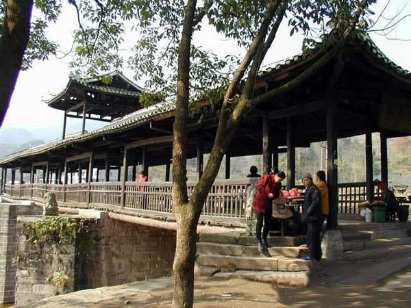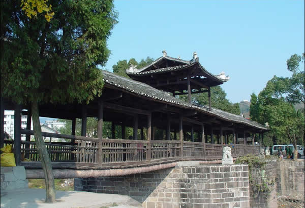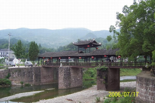 | 賀龍橋原名永安橋,是賀龍曾祖父賀廷宰首倡修建的,它是一座由石墩、木梁、騎廊組成的風雨橋。賀廷宰熱心公益事業(yè),見玉泉河“奔流湍急,道路為梗”,行人十分不便,于是決定修橋。由于他只是一個教私塾的文人,修橋工程艱巨,個人經(jīng)費有限,“至斥腴畝以償其負”。后來,賀龍的祖父賀良仕子代父勞,費盡心血,終于在1915年修建成功,深獲遠近鄉(xiāng)鄰稱頌。