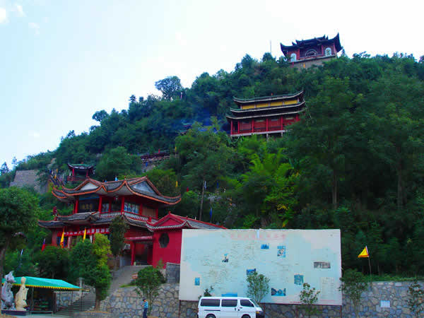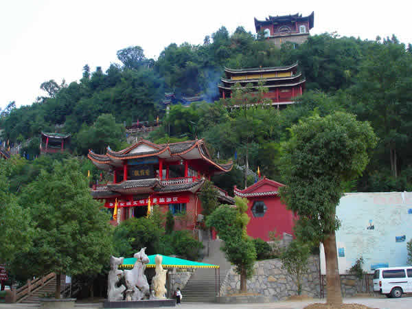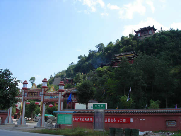 紫霞觀 紫霞觀始建于明朝嘉靖年間,近500年的歷史,在戰(zhàn)亂時期收到不同程度的破壞。紫霞觀是1992年因旅游事業(yè)的發(fā)展,教徒的信教,經(jīng)政府的批準(zhǔn),由各地的善男信女共同捐資,當(dāng)?shù)卣畵芸顢U(kuò)建起來的。道觀共有大小殿廟30余座,計5殿、3宮、2亭、2廟、1閣、八仙山、仙人足跡石、中華同心鎖等景點。中國著名書法家沈鵬先生為紫霞觀題寫了觀名,觀內(nèi)有國內(nèi)外著名書法家的題詞、碑刻等宗教文物,以及老子教祖講經(jīng)說法渡化圖一百余幅。