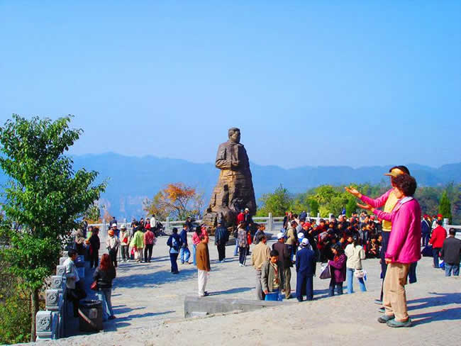 坐落在1200米的千層巖左側(cè)。公園內(nèi),屹立在“云青巖”上的賀龍銅像與大自然連為一體,形成獨(dú)特的藝術(shù)風(fēng)格。這是我國近百年塑造的最大的一尊銅像。神堂灣:神堂灣是一個(gè)神秘的天國,一座綠色的迷宮,至今無人問津。一個(gè)凹形深谷,四面是刀切般的絕壁,終日霧雨霏霏。向下層巒疊嶂,形成五級(jí)神堂,谷底深不可測,被稱作“神秘的天國”。