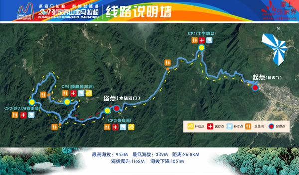 張家界武陵源山地馬拉松活動(dòng)路線圖