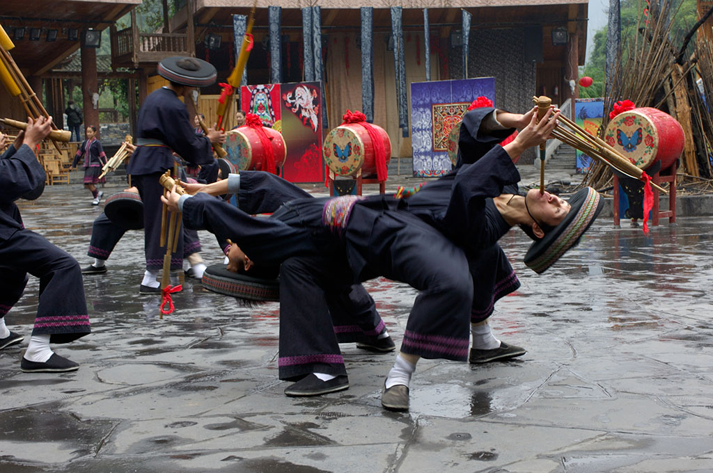 吉首市德夯風(fēng)景區(qū)地處云貴高原邊緣,位于湘西土家族苗族自治州首府吉首市西郊,距吉首市24公里。德夯旅游區(qū)以矮寨為中心,東到堂樂洞、西到大龍洞,南從武山、蓮臺山開始,北到流紗瀑布(全國落差最高的流紗瀑布和瀑布群),小龍洞,總面積約190平方公里。自矮寨鎮(zhèn)洞溪上行4公里至德夯苗寨,沿岸筒車、水輾、古渡、小舟,伴以苗家吊腳樓,一派田園詩情。九龍溪穿寨而過,四周山色清幽,懸崖如削......在青山綠水間,點(diǎn)綴著一幢幢灰瓦石基吊腳樓,一條條光滑的石板路,一座座精巧的石拱橋,一群群赤足紅裝的浣紗苗女。還有那古老的石碾和筒車,在水力的帶動下,咕咕嚕嚕、咿咿呀呀,不知疲倦地旋轉(zhuǎn)著,一派田園詩情,這就是德夯苗寨。由于這里是純苗區(qū),苗族人民的風(fēng)俗習(xí)慣對德夯影響很大,苗族人民的四月八、跳鼓舞、三月三歌會、趕秋、接龍、推牛以及苗嶺情歌,無不吸引著中外游客。因此,古樸優(yōu)雅的苗族風(fēng)情又成為德夯人為景觀的特色。